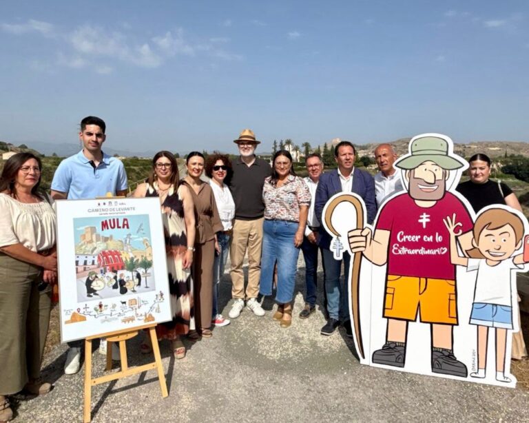 La localidad de Mula cuenta con su propio cartel informativo del Camino de Levante de la Vera Cruz ilustrado por...